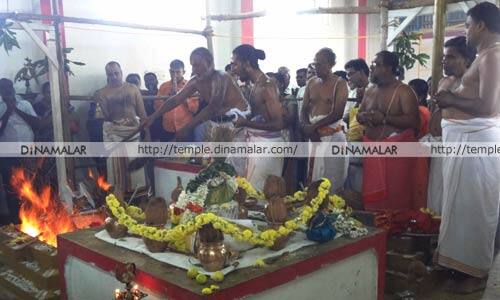 செஞ்சி: இஞ்சிமேடு, லட்சுமி நரசிம்மருக்கு, சுவாதி நட்சத்திரத்தை முன்னிட்டு, சிறப்பு ஹோமம் நடந்தது. திருவண்ணாமலை மாவட்டம், பெரணமல்லுார் அடுத்த இஞ்சிமேட்டில், பெருந்தேவி நாயகி சமேத வரதராஜப் பெருமாள் கோவில் அமைந்துள்ளது. இங்கு, சுவாதி நட்சத்திரத்தை முன்னிட்டு, சிறப்பு ஹோமம் நடந்தது. காலை 7:00 மணிக்கு, கோபூஜையும், வரதராஜர், பெருந்தேவி தாயார், கல்யாண லட்சுமி நரசி ம்மர், ராமர், சீதா, லட்சுமணர், கருடாழ்வார், கல்யாண வரத அனுமன் ஆகியோருக்கு திருமஞ்சனமும் நடந்தது. காலை 10:00 மணிக்கு, வரதராஜர், பூதேவி, பெருந்தேவி தாயாருடன் யாகசாலையில் எழுந்தருளினார். இஞ்சிமேடு பாலாஜி பட்டாச்சாரியார் தலைமையில், கல்யாண லட்சுமி நரசிம்மருக்கு சிறப்பு ஹோமம் நடத்தப்பட்டது. இதில், நரசிம்ம, கருட, மகாலட்சுமி, தன்வந்திரி பூஜையும், ஒரு லட்சம் மந்திரங்களும் ஓதப்பட்டது. பின், ஹோமத்தில் வைக்கப்பட்ட கலச நீரை கொண்டு, கல்யாண லட்சுமி நரசிம்மருக்கு சிறப்பு அபிஷேகம் செய்தனர். விழா ஏற்பாடுகளை, ஸ்ரீரங்க சட÷ காப கைங்கர்ய சபாவினர் செய்திருந்தனர்.