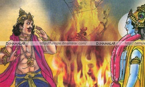 அதே நேரத்தில் தேர் குபீரென்று தீப்பிடித்து தேரின் முழுபாகங்களும் கொழுந்துவிட்டு எரிந்து அப்படியே சாம்பலாகிவிட்டது. இதைக்கண்ட அர்ஜுனன் அதிர்ந்துபோய் நின்றான். அப்போது கிருஷ்ணன் அர்ஜுனா! இதுவரை உன் எதிரிகள் உன்மீது ஏவிய மந்திரக் கணைகளும், மாய அம்புகளும், நாகாஸ்திரமும் தங்களது சக்திகளை வெளிப்படுத்த முடியாமல் அடங்கிப் போய்க் கிடந்தன. காரணம், நான் தேரில் அமர்ந்திருந்ததாலும் சக்தி மிகக்கொண்ட அனுமன், தேர்க்கொடியில் இருந்ததாலும் அந்த மந்திர சக்திகள் செயலற்றுக் கிடந்தன. நானும் அனுமனும் தேரைவிட்டு விலகியதும். மாயமந்திர அஸ்திரங்கள் தம் கொடூரத்தை வெளிப்படுத்த, தேரில் தீப்பற்றிக் கொண்டது. உனக்குமுன் நான் தேரைவிட்டு இறங்கி, அனுமனும் கொடியிலிருந்து நகர்ந்துவிட்டு நீ மட்டும் தேரில் நின்றிருந்தால் உன் கதி என்னவாகியிருக்கும் அர்ஜுனா? என்றான் கண்ணன். அர்ஜுனன், ஆணவத்தோடு நடந்து கொண்டதை எண்ணி கூனிக்குறுகிப் போனான். அப்படியே கிருஷ்ணன் கால்களில் விழுந்தான். கிருஷ்ணனும் அர்ஜுனனை எழச்செய்து தன்னோடு அணைத்துக்கொண்டு, போர்க்களம் விட்டுச்சென்றான். ஆணவம் சில நேரம் தம் கண்களை மறைத்து விடும். அதனால் பின்னர் அவதிப்பட வேண்டிவரும். ஆணவத்தைவிட்டு, நம்மை நல்வழிப்படுத்திக்கொள்ள வேண்டும். கிருஷ்ணனின் கீதையில் இந்த அறிவுரையும் ஒன்று.