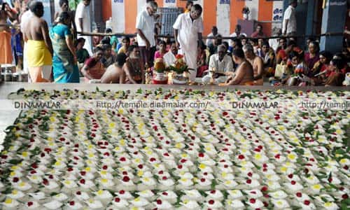 விழுப்புரம்: விழுப்புரம் பூந்தோட்டம் ஆதிவாலீஸ்வரர் கோவிலில், 1008 சங்காபிஷேக விழா நடந்தது. விழாவையொட்டி, காலை 7:00 மணிக்கு சிவவேள்வியுடன் 1008 சங்கு பூஜைகள் துவங்கி, காலை 9:30 மணிக்கு வேள்வி பூஜை நிறைவடைந்தது. பின், காலை 10:00 மணிமுதல் பகல் 12:00 மணி வரை சங்காபிஷேகம், வேள்வியில் கலந்து கொள்பவர்கள் தங்கள் கைகளால் சங்கை எடுத்து சென்று கருவறையில் அபிஷேகம் செய்யும் நிகழ்ச்சி நடந்தது.தொடர்ந்து, காலை 12:00 மணிக்குமேல் கலசம் புறப்பட்டு மகாபிஷேகம், அலங்காரம், மகாதீபாராதனை நடந்தது.
