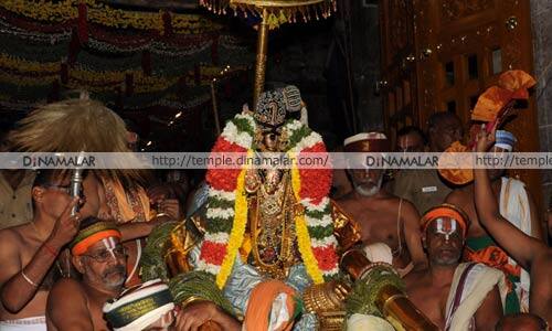 திருச்சி: திருச்சி, ஸ்ரீரங்கம் ரங்கநாதர் கோவிலில், வைகுண்ட ஏகாதசி பகல் பத்து உற்சவத்தை முன்னிட்டு, நம்பொருமாள் மூலஸ்தானத்தில் இருந்து ஆண்டாள் முத்துக்கொண்டை, ரத்தின அபயஹஸ்தம், இருதலை பட்ஷி, காசு மாலை அலங்காரத்தில் அர்ச்சுன மண்டபத்துக்கு எழுந்தருளி பக்தர்களுக்கு அருள்பாலித்தார்.