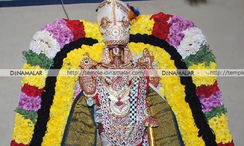 விழுப்புரம்: விழுப்புரம் வைகுண்டவாச பெருமாள் கோவிலில் சுவாமி, காஞ்சி வரதராஜ பெருமாள் சேவையில் அருள்பாலித்தார். விழுப்புரம் வைகுண்டவாச பெருமாள் கோவிலில், வரும் 21ம் தேதி அதிகாலை 5:00 மணிக்கு சொர்க்கவாசல் திறப்பு நிகழ்ச்சி நடக்கிறது. இதை யொட்டி கடந்த 11ம் தேதி, பகல் பத்து உற்சவம் துவங்கியது. தொடர்ந்து 6ம் நாள் உற்சவத்தை யொட்டி நேற்று காலை 6:00 மணிக்கு வைகுண்டவாசருக்கு சிறப்பு அபிஷேக, ஆராதனைகள் நடந்தது. காலை 9:00 மணிக்கு வைகுண்டவாச பெருமாள், காஞ்சி வரதராஜ பெருமாள் சேவை சிறப்பு அலங்காரத்தில் பக்தர்களுக்கு அருள்பாலித்தார். தொடர்ந்து 9:30 மணிக்கு தீபாராதனை நடந்தது. இதற்கான ஏற்பாடுகளை கோவில் அர்ச்சகர் வாசு பட்டாச்சாரியார் செய்திருந்தார்.