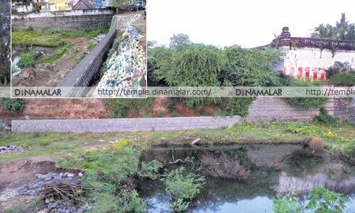 இதன் காரணமாக அப்பகுதி வீடுகளின் சுவற்றில் லேசான விரிசல் ஏற்பட்டுள்ளதால், பொதுமக்கள அச்சமடைந்துள்ளனர். இதையடுத்து, பொதுமக்கள் சார்பில் மணல் மூட்டைகளை அடுக்கும் பணிகள் மேற்கொள்ளப்பட்டது. கோவில் சுற்றுசுவர் அமைந்துள்ள இடத்திலும் லேசான மண் சரிவு ஏற்பட்டுள்ளது. இப்பகுதியில் மீண்டும் பலத்த மழை பெய்து, மண் சரிவு ஏற்பட்டால் கோவில் சுற்றுசுவர் இடிந்து விழும் அபாயநிலை உருவாகியுள்ளது. கோவில் குளத்தில் தண்ணீர் இல்லாததால், பொதுமக்கள் குப்பை கொட்டும் இடமாக பயன் படுத்தி வருகின்றனர். வைகுண்ட ஏகாதசியன்று கோவி<லுக்கு வந்த பக்தர்கள், இந்த குளத்தை பார்த்து முகம் சுழித்து செல்லும் நிலை ஏற்பட்டது. விபத்து ஏற்படும் முன் குளத்தில் உள்ள குப்பைகளை அகற்றி சுற்றுசுவர் கட்டவும், கோவில் சுவற்றில் வளர்ந்துள்ள செடிகளை அகற்றி, தூய்மைபடுத்தவும், அதிகாரிகள் துரித நடவடிக்கை எடுக்க வேண்டும்.