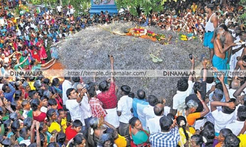 திருப்புவனம்: திருப்புவனம் அருகே லாடனேந்தல் பூங்காவனம் முத்துமாரியம்மன் கோயிலில் நாகராணி என்ற பெண் சாமியார் முள் படுக்கையில் அமர்ந்து அருள் வாக்கு சொல்லும் நிகழ்வு நடந்தது. லாடனேந்தல் முத்துமாரியம்மன் கோயிலில் படுக்கை வசத்தில் மாசாணியம்மன் சிலை உள்ளது. ஆண்டு தோறும் மார்கழி 18ம் நாள் முள்படுக்கை அருள்வாக்கு நிகழ்ச்சி பிரசித்தம். அருள்வாக்கு வைபவத்திற்காக நாகராணி 40 நாட்களுக்கு முன் விரதம் இருந்தார். 41 வது நாள் மார்கழி 18 அன்று அதிகாலை மாசாணியம்மன், முத்து மாரியம்மனுக்கு சிறப்பு பூஜை நடத்திய பின் முள் படுக்கைக்கு வந்தார். முள் மேடையில் ஏறி சாமி ஆடியபடி அப்படியே படுத்து பக்தர்களின் வேண்டுதலுக்கு ஏற்ப அருள் வாக்கு சொன்னார்.