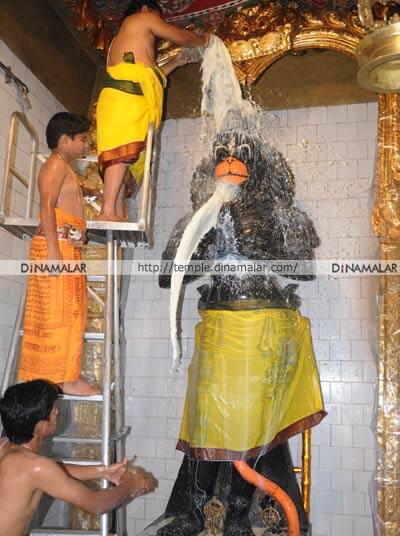 வைகை நதியே தென்பாகமே அமைத்து வளம் கொழிக்கும் திண்டுக்கல் மாவட்டம், சின்னாளப்பட்டி மேட்டுப்பட்டியில் அமைந்து அருள்தரும் அஞ்சலி வரத ஆஞ்சநேயர் சுவாமி மிகவும் சக்தி வாய்ந்தவர். இக்கோயிலில் இன்று(ஜன.8ல்) காலை 8 மணிமுதல் பஞ்ச சூக்த ஹோமம், மஹா சுதர்சன ஹோமம், அனுத் சகஸ்ர நாம ஹோமம், 10. 00 மணியளவில் மஹா பூர்ணாஹுதி சிறப்பாக நடைபெற்றது. தொடர்ந்து காலை 10.30 மணியளவில் மிக பிரம்மாண்டமாக 500 லிட்டர் பால் அபிஷேகம், 108 இளநீர் அபிஷேகம் மற்றும் 16 வகையான திரவியங்களுடன் அபிஷேகமும் அதை தொடர்ந்து ஏழுவகையான வர்னாபிஷேகமும் நவ கலச கும்ப அபிஷேகமும் நடைபெற்றது. விழாவில் சுவாமி தங்க கவசத்தில் ராஜ அலங்காரத்தில் பக்தர்களுக்கு அருள்பாலித்தார்.