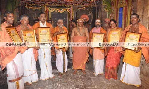 குடியாத்தம் சந்திரசேகர சிவாச்சாரியாருக்கு சிவாகமக் கலாநிதி, வைத்தீஸ்வரன்கோயில் முருகன் ஓதுவாருக்கு தெய்வத் தமிழிசைச் செல்வர், இசைக்கலைஞர்கள் சென்னை சுசித்ராவுக்கு சங்கீத வித்யாநிதி, சீர்காழி ரமேஷ்க்கு நாதஸ்வர கலைமணி, தமிழறிஞர் ஈரோடு வெங்கடாசலத்திற்கு சிவநெறித் திருத்தொண்டர் மாமணி, கல்வி பணிக்கு குத்தாலம் ராஜ் வித்யாலயா நிறுவனர் பாண்டியனுக்கு கல்வி சேவா ரத்தினம், சுவாமிமலை மோகன்ராஜ் ஸ்தபதிக்கு சிற்பக் கலை வித்தகர் எனும் விருதுகளும், தலா பொற்கிழி ரூ. 5 ஆயிரமும் ஆதீனம் 24வது குருமகாசன்னிதானம் வழங்கினார். தொடர்ந்து மாகேஸ்வர பூஜையும், ஆலவாய் அண்ணல் அறக்கட்டளை குழுவினரின் தேவார இன்னிசை நிகழ்ச்சியும், சென்னை சுசித்ரா குழுவினரின் இன்னிசை கச்சேரியும் நடந்தது. இதில் ஆதீன தம்பிரான் சுவாமிகள், மதுரை ஆதீனம், குன்றக்குடி ஆதீனம் பிரதிநிதிகள், சிவகங்கை சமஸ்தானம் இளங்கோ, சைவ சித்தாந்த பேராசிரியர்கள், ஆதீனப்புலவர்கள், கோயில் கண்காணிப்பாளர்கள், ஆசிரியர்கள் உட்பட மாநிலத்தின் பல்வேறு பகுதிகளைச் சேர்ந்த பலர் கலந்து கொண்டனர்.