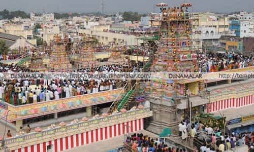சிறப்பு ஏற்பாடு: கும்பாபிஷேகத்திற்கு லட்சக்கணக்கான பக்தர்கள் கூடுவர் என்பதால், டி.எஸ்.பி., சிகாமணி, இன்ஸ்பெக்டர் பரவாசுதேவன் தலை மையில் போலீசார் குவிக்கப்பட்டுள்ளனர். பெண் பக்தர்கள் நகைகளை தங்கள் ஜாக்கெட்டுடன் இணைத்துக் கொள்ள ஊக்குகள் வழங்க போலீசார் ஏற்பாடு செய்துள்ளனர்.