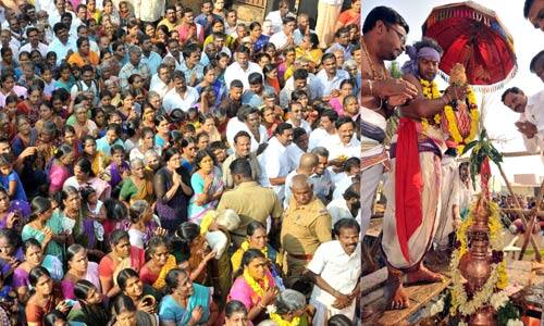 அனகாபுத்துார், அங்காள பரமேஸ்வரி அம்மன் கோவிலில், ஆலய திருப்பணி முடிந்து, நேற்று,