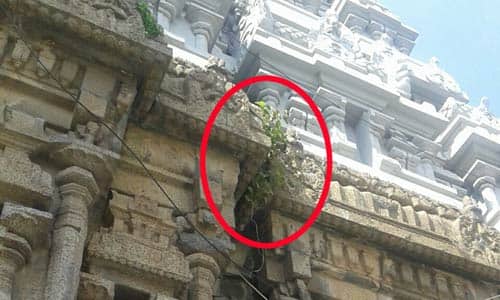 வேதகிரீஸ்வரர் கோவில் கோபுரத்தில் முளைக்கும் செடிகள்
