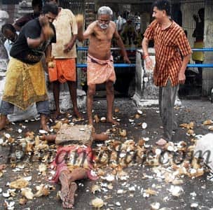 முதுகில் அம்மிக்கல் வைத்து 508 தேங்காய் உடைத்து நேர்த்திக்கடன்!