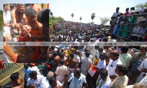 திருவண்ணாமலை: மாசி மகத்தையொட்டி கடந்த 22ம் தேதி, திருவண்ணாமலை அடுத்த பள்ளிகொண்டாப்பட்டு கிராமத்தில் உள்ள கவுதம் நதிக்கரையில் பலத்த பாதுகாப்புடன் அண்ணாமலையாருக்கு “சூலம் ரூபத்தில்” தீர்த்தவாரி நடந்தது. உண்ணாமுலையம்மன் சமேதரராய் அண்ணாமலையார் தீர்த்தவாரி மண்டபத்தில் எழுந்தருளி பக்தர்களுக்கு அருள்பாலித்தார். இதில் ஏராளமான பக்தர்கள் ஸ்வாமி தரிசனம் செய்தனர். நதிக்கரையில் பலத்த பாதுகாப்புடன் தடுப்புகள் அமைக்கப்பட்ட பகுதிகளில் மட்டுமே பக்தர்களை போலீஸார் அனுமதித்தனர். இதில் முன்னோர்களுக்கு தர்ப்பணம் கொடுத்து ஏராளமான பக்தர்கள் புனிதநீராடினர்.