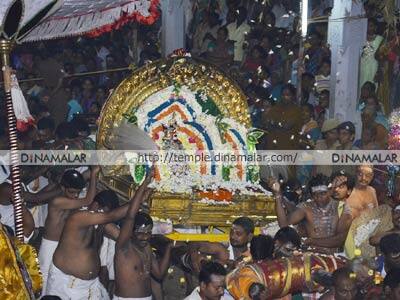திருவொற்றியூர் வடிவுடையம்மன் கோவிலில், கடந்த, ௧௨ம் தேதி துவங்கிய பிரம்மோற்சவம், நேற்று முடிந்தது. நிறைவு நாளான நேற்று அதிகாலை, தியாகராஜ சுவாமி, வடிவுடையம்மன், விநாயகர் மற்றும் சண்டிகேஸ்வரர், மாடவீதிகளை வலம் வந்தனர். பின் கோவிலுக்குள் சென்றனர். கோவிலுக்குள் வசந்த தீர்த்த குளத்தை சுற்றி, தியாகராஜ சுவாமி, வலமிருந்து இடமாக, ஒன்பது முறையும், வடிவுடையம்மன், இடமிருந்து வலமாக ஒன்பது முறையும் திருநடனம் புரிந்தனர். மங்கல இசை முழங்க வண்ண வண்ண பூக்கள் துாவப்பட்டன. அவற்றை பக்தர்கள் சேகரித்து, தங்கள் தலையிலும், பைகளிலும் வைத்துக் கொண்டனர். பின் வடிவுடையம்மனுக்கு, தியாகராஜ சுவாமி திருநடன காட்சி அளித்தார். இந்த நிகழ்வு பந்தம்பறி என அழைக்கப்படுகிறது. பந்தம்பறியை தரிசிக்க, நேற்று முன்தினம் இரவு முதல், கோவில் வளாகத்தினுள்ளும், கோவிலுக்கு வெளியேயும் ஆயிரக்கணக்கான பக்தர்கள் தங்கியிருந்தனர். உற்சவம் முடிந்த பின், வெளியூர் பக்தர்கள் சொந்த ஊர்களுக்கு புறப்பட்டு சென்றனர்.
