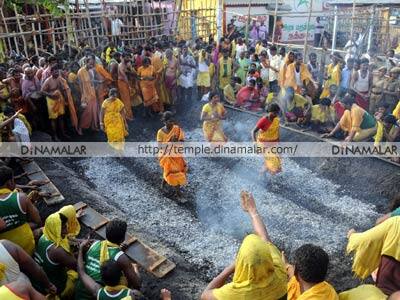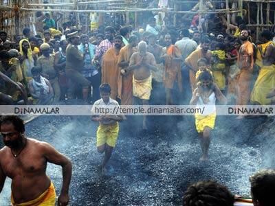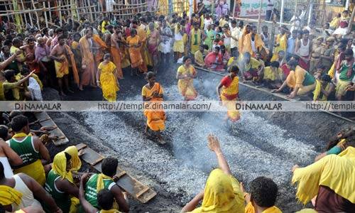 பிப்., 15ல் கொடியேற்றத்துடன் விழா துவங்கியது. மறுநாள் கரந்தமலை கன்னிமார் கோயில் தீர்த்தம் எடுத்து வந்த பக்தர்கள், காப்பு கட்டி விரதம் தொடங்கினர். அம்மன் வாகனங்களில் நகர்வலம் செல்வது உள்ளிட்ட வைபவங்கள் நடந்தன.நேற்று முன்தினம் இரவு முதல் பக்தர்கள் மாவிளக்கு, தீச்சட்டி எடுத்தல், அலகு குத்துதல் என நேர்த்திக் கடன் செலுத்தினர். முக்கிய நிகழ்வான பூக்குழி இறங்குதல் நேற்று மாலை நடந்தது. பகலில் கோயில் முன் வழுக்கு மரம் ஊன்றப்பட்டது; இளைஞர்கள் போட்டி போட்டு மரம் ஏறினர். அதைத் தொடர்ந்து ஏராளமான பக்தர்கள் நீண்ட வரிசையில் காத்திருந்து இரவு 10 மணி வரை பூக்குழி இறங்கினர். பின், வழுக்கு மரம் அம்மன் குளத்தில் விடப்பட்டது. இன்று பகலில் மஞ்சள் நீராட்டு, இரவில் அம்மன் பூப்பல்லக்கில் நகர்வலம் செல்வதுடன் விழா நிறைவடையும். சரவணன் எஸ்.பி., மேற்பார்வையில் போலீசார் பாதுகாப்பு பணியில் ஈடுபட்டுள்ளனர்.