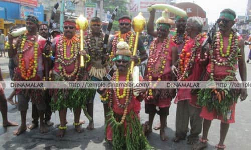 விழாவின் முக்கிய நிகழ்வான அம்மன் அழைத்தல் நேற்று காலை, 10 மணிக்கு செல்லியாண்டியம்மன் கோவிலில் இருந்து துவங்கியது. புதிய பஸ் ஸ்டாண்ட் அருகில் உள்ள எல்லையம்மனுக்கு சிறப்பு பூஜை நடத்தப்பட்டது. சக்தி அழைப்பு நிகழ்ச்சி மதியம், 12 மணியளவில் தொடங்கி செல்லியாண்டியம்மன் கோவிலுக்கு மாலை, 5 மணிக்கு சென்றடைந்தது. இதில், பவானி, சேலம், நாமக்கல் உட்பட பல்வேறு மாவட்டங்களில் இருந்து வருகை தந்த ஆயிரக்கணக்கான பக்தர்கள் பல வண்ணங்களில், பல வகையான வேடங்கள் அணிந்தும், தங்களின் உடம்பில் சேறு பூசி ஊர்வலமாக சென்றனர். அப்போது வழிநெடுகிலும் உள்ள பெண்கள் தங்களின் வேண்டுதலை நிறைவேற்றும் வகையில் பக்தர்கள் மீது உப்பு மிளகு, வாழைப்பழம், காய், கனிகள், தண்ணீர் பாக்கெட், குளிர்பானம், பிஸ்கட், மிட்டாய், புது துணிகள், பேனா உட்பட பல்வேறு வகையான பொருட்களை வீசி நேர்த்திக் கடன் செலுத்தினர். மாலை அலகு குத்தியும், அக்னி சட்டி ஊர்வலமும் நடந்தது.