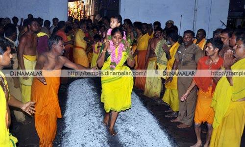 ஈரோடு: கள்ளுக்கடை மேடு கொண்டத்து பத்ரகாளியம்மன் கோவில் குண்டம் திருவிழாவில், ஆயிரக்கணக்கான பக்தர்கள் குண்டம் இறங்கி நேர்த்திக்கடன் செலுத்தினர். ஈரோடு, கள்ளுக்கடை மேடு கொண்டத்து பத்ரகாளியம்மன் கோவில் குண்டம் திருவிழா கடந்த பிப். 19ல் பூச்சாட்டுதலுடன் தொடங்கி, கொடியேற்றம், பால்குடம் ஊர்வலம், வெகுவிமர்சியாக நடந்தது. விழாவின் முக்கிய நிகழ்வான குண்டம் இறங்கும் நிகழ்ச்சி நேற்று அதிகாலை தொடங்கியது. கடந்த, 15 நாட்களாக, காப்புகட்டி, மஞ்சள் ஆடை உடுத்தி, விரதம் கடைபிடித்து வந்த பக்தர்கள், மூன்று நாட்களுக்கு முன்பாகவே குண்டம் இறங்கும் வரிசையில் காத்திருந்தனர். நேற்று அதிகாலை, 5 மணிக்கு, கோவில் பூசாரி முதலில் குண்டம் இறங்கினார். அதன் பின்னர் பக்தர்கள் ஒருவர் பின் ஒருவராக குண்டம் இறங்கினர். கோவிலில் காப்பு கட்டி பதிவு செய்திருந்த, 10 ஆயிரம் பேருக்கு மேல் குண்டம் இறங்கி நேர்த்திக் கடன் செலுத்தினர். ஆண்கள், பெண்கள், திருநங்கைகள் என பலரும் கை குழந்தைகளுடன் ஓம் சக்தி, பராசக்தி என கோஷமிட்டபடியே, குண்டத்தில் இறங்கி ஓடினர். தொடர்ந்து மாவிளக்கு ஊர்வலம், பொங்கல் வைத்தல், இரவு உற்சவர் புறப்பாடு நிகழ்ச்சி நடந்தது. போலீஸ் பாதுகாப்பு போடப்பட்டிருந்தது. தீயணைப்பு துறையினர், மருத்துவ குழுவினர், பாதுகாப்பு பணியில் இருந்தனர்.