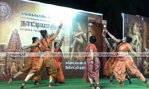 அரியலுார்: அரியலுார் மாவட்டம், கங்கைகொண்ட சோழபுரத்தில், மகா சிவராத்திரியை முன்னிட்டு,நாட்டியாஞ்சலி நிகழ்ச்சி துவங்கியது.யுனெஸ்கோவால், புராதான சின்னமாக அறிவிக்கப்பட்ட கங்கைகொண்ட சோழபுரம், பிரகதீஸ்வரர் கோவிலில், மகா சிவராத்திரியை முன்னிட்டு, முதன்முதலாக துவங்கிய நாட்டியாஞ்சலி நிகழ்ச்சிக்கு,கங்கைகொண்டசோழபுரம் மேம்பாட்டு குழும தலைவர் கோமகன் தலைமை வகித்தார். விழாவில், முதல் நாள் நிகழ்ச்சியாக, ஆறு குழுவினரின் நாட்டியாஞ்சலி நிகழ்ச்சி நடந்தது.