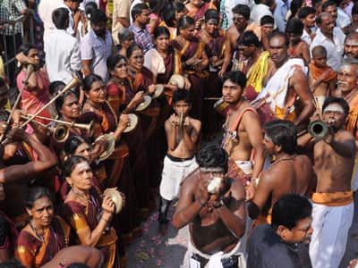 இன்னிசைத்து வந்த, நாதஸ்வர இசைக்குழுவினர், கோவிலின் மேல்தளத்துக்கு அனுமதிக்கப்