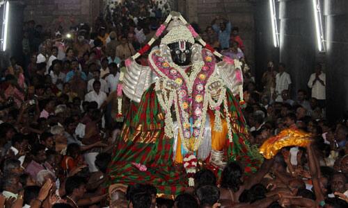 உற்சவராகவும், மூலவராகவும் உள்ள கல்கருட புறப்பாட்டின் போது முதலில் 4 பேரும் பின்னர் படிப்படியாக 8, 16, 32, 64 பேர் என கல்கருடனை தூக்கிக்கொண்டு பக்தர்கள் வெள்ளத்தில் மிதந்து செல்வதும் சிறப்பு வாய்ந்த கண்கொள்ளாக்காட்சியாக இருந்தது. இதில், ஆயிரக்கணக்கான பக்தர்கள் கலந்துகொண்டு தரிசனம் செய்தனர். சீனிவாசபெருமாள் கல்கருடவாகனத்திலும், வஞ்சுளவல்லி தாயார் வெள்ளி அன்னபட்சி வாகனத்திலும் வீதியுலா நடந்தது. 9ம் நாள் நிகழ்ச்சியாக வருகிற 23ம்தேதி காலை 9 மணிக்கு தேரோட்டம் நடைபெறுகிறது. அன்று மதியம் 2 மணிக்கு தீர்த்தவாரி நடக்கிறது. நிறைவு விழாவாக வருகிற 24ம்தேதி இரவு 7 மணிக்கு சுவாமி மற்றும் தாயார் படிச்சட்டத்தில் எழுந்தருளி வீதியுலா நடக்கிறது. விழா ஏற்பாடுகளை கோயில் செயல்அலுவலர் குணசேகரன் மற்றும் பணியாளர்கள் செய்து இருந்தனர்.
