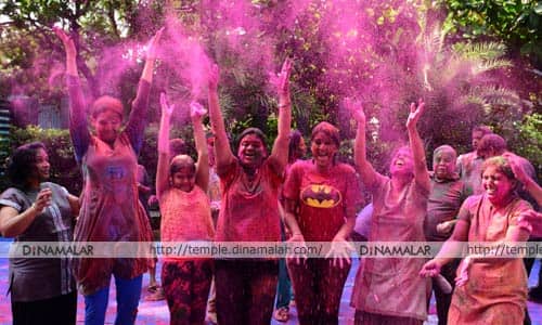 திருப்பூர் : திருப்பூர் பகுதியில், ஹோலி பண்டிகை உற்சாகத்துடன் நேற்று கொண்டாடப்பட்டது. வட மாநிலத்தவர்களின் கொண்டாட்டங்களில், ஹோலி பண்டிகை முக்கியத்துவம் வாய்ந்தது. பின்னலாடை நகரான திருப்பூரில், மகாராஷ்டிரா, ராஜஸ்தான், குஜராத் உள்ளிட்ட வெளி மாநிலங்களை சேர்ந்தவர்கள் தங்கி, நிறுவனங்களில் பணியாற்றுகின்றனர். தங்கள் பண்டிகைகளை திருப்பூரிலேயே கொண்டாடுவதை வழக்கமாகக் கொண்டுள்ளனர். இங்கு வசிக்கும் வட மாநிலத்தவர்கள், தங்களது குடும்பத்தினரோடு ஹோலி பண்டிகையை, உற்சாகத்துடன் நேற்று கொண்டாடி மகிழ்ந்தனர்.ராயபுரம், காதர்பேட்டை, ஸ்டேட் பாங்க் காலனி, சித்தப்பா அவென்யூ உள்ளிட்ட பகுதிகளில் வசிக்கும் வெளிமாநிலத்தவர்கள், நண்பர்கள், உறவினர்களுடன் இணைந்து, ஒருவர் மீது ஒருவர் வண்ண பொடிகளை தூவி, சாயங்களை கரைத்து, தெளித்து மகிழ்ந்தனர்.