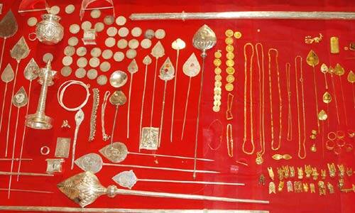 திண்டுக்கல் மாவட்டம் பழநியில் முருகப்பெருமானின் அறுபடைவீடுகளில் ஒன்றான தண்டாயுதபாணி சுவாமி கோயில் உள்ளது. இங்கு பக்தர்கள் உண்டியலில் காணிக்கையாக செலுத்திய தங்கம், வெள்ளியாலான வேல், நாணயம், விளக்கு, காவடி, செயின், மோதிரம் மற்றும் பலவிதமான பொருட்கள்.