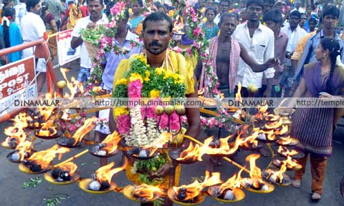 கரகம் எடுத்தல்: விழாவின் முக்கிய நிகழ்ச்சியாக ஏப்.3ல் பொங்கல் விழா நடந்தது. இதில் ஆயிரக்கணக்கான பக்தர்கள் விரதமிருந்து பொங்கலிட்டு அம்மனை வழிப்பட்டனர். நேற்று பக்தர்கள் கயிறு குத்து, அக்னி சட்டி ஏந்துதல், கரகம் எடுத்தல், ரதம் இழுத்தல், கரும்புள்ளிகள் உட்பட பல வேடங்கள் போட்டும், காவடி ஏந்தியும் நேர்த்திக்கடன் செலுத்தினர்.