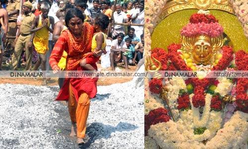நேர்த்திகடன்: 12.30 மணிக்கு கோயில் அர்ச்சகர் ஹரிரஹரன், அம்மனுக்கு சிறப்பு பூஜைகள் செய்த பின், மதியம் 1.05 மணிக்கு பூக்குழி இறங்க துவங்கினர். மாலை 5 மணிவரை நடந்த இதில் ஏராளமான பக்தர்கள் தீ மிதித்து நேர்த்திகடன் செலுத்தினர். மதுரை, தேனி, திருநெல்வேலி மாவட்டங்களை சேர்ந்த ஆண், பெண் பக்தர்கள் தங்களது குழந்தைகளுடன் தீ மிதித்தனர்.