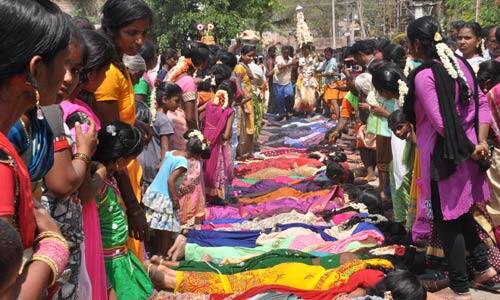 கிருஷ்ணகிரி: தமிழக - ஆந்திர மாநில எல்லைப் பகுதி கிராமமான சிந்தகம்பள்ளியில், யுகாதி திருவிழாவையொட்டி, பக்தர்கள் மீது பூசாரி நடந்து செல்லும் வினோத வழிபாடு நடந்தது.