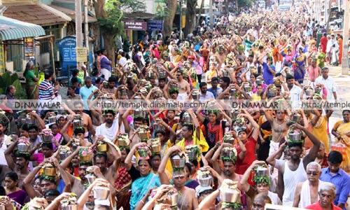 தஞ்சாவூர்: தஞ்சாவூரில் புன்னைநல்லுார் மாரியம்மனுக்கு, பக்தர்கள் நேற்று, 1,400 பால்குடம் எடுத்து நேர்த்திக் கடன் செலுத்தினர்.தஞ்சாவூர் புன்னைநல்லுார் மாரியம்மன் கோவில் பிராமணாள் கைங்கர்ய டிரஸ்ட் சார்பில், நேற்று காலை, 1,400 பால்குடங்களுடன், சிவகங்கை பூங்காவில் இருந்து ஊர்வலம் புறப்பட்டது. மதியம் 12:00 மணிக்கு, கோவிலுக்கு பால்குடங்கள் வந்ததும், அம்பாளுக்கு பாலாபிஷேகம் செய்யப்பட்டது. இதில், ஏராளமான பக்தர்கள், தங்கள் நேர்த்திக்கடனை செலுத்தினர். இரவு, 7:00 மணிக்கு, கோவில் உள்ளே அம்பாள் புறப்பாடு வெகு சிறப்பாக நடந்தது.