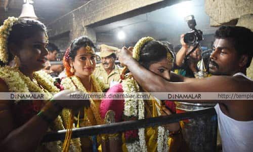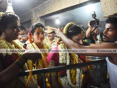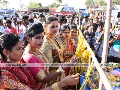 உளுந்துார்பேட்டை : கூவாகம், கூத்தாண்டவர் கோவில் பெரு விழாவில், திருநங்கையருக்கு தாலி கட்டும் நிகழ்ச்சி, நேற்று நடந்தது. விழுப்புரம் மாவட்டம், உளுந்துார்பேட்டை அடுத்த கூவாகம் கிராமத்தில், பிரசித்தி பெற்ற கூத்தாண்டவர் கோவிலில், சித்திரை விழா, 5ம் தேதி சாகை வார்த்தலுடன் துவங்கியது. கூவாகம், கூவாகம் காலனி, தொட்டி, நத்தம், அண்ணாநகர், சிவலிங்குளம், பாரதி நகர் உள்ளிட்ட, ஏழு கிராம பெண்கள், கஞ்சி கலயங்களை ஊர்வலமாக எடுத்து வந்து, மாரியம்மனுக்கு படையலிட்டு வழிபட்டனர். மறுநாள், பந்தலடியில் ஊர் பிரமுகர்களுக்கு தாலி கட்டும் நிகழ்ச்சி, 10ம் தேதி பாஞ்சாலி பிறப்பு நிகழ்ச்சிகள் நடந்தன. நேற்று இரவு, சுவாமிக்கு திருக்கண் திறப்பு நிகழ்ச்சி நடந்தது. பூசாரிகளிடம் தாலி கட்டிக் கொண்ட திருநங்கையர், இரவு முழுவதும் ஆடிப்பாடினர். மும்பை, சென்னை, டில்லி, கோல்கட்டா போன்ற நகரங்களில் இருந்து, ஆயிரக்கணக்கான திருநங்கையர் பங்கேற்றனர். இன்று காலை, 6:30 மணிக்கு தேரோட்டம் நடக்கிறது.