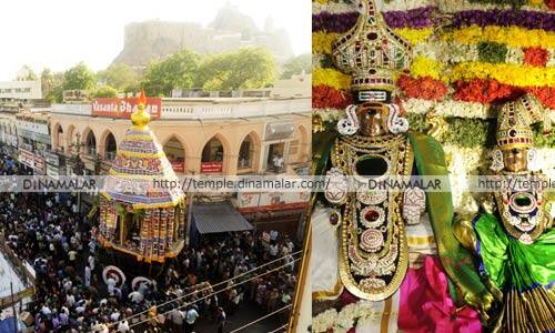 திருச்சி: திருச்சி மலைக்கோட்டை தாயுமாணவர் ஸ்வாமி கோவிலில் சித்திரை பெருவிழாவை முன்னிட்டு, தேராட்டம் கோலாகலமாக நடைபெற்றது.