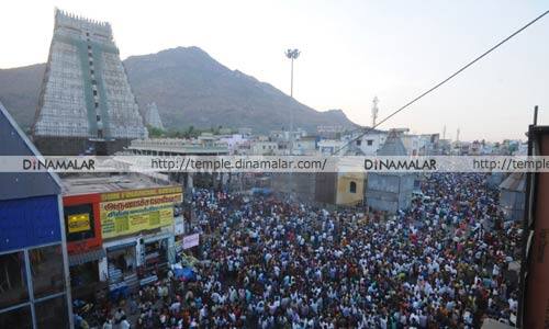 திருவண்ணாமலை:சித்ரா பவுர்ணமியை முன்னிட்டு, திருவண்ணாமலையில், லட்சக்கணக்கான பக்தர்கள் கிரிவலம் சென்றனர்; 4 மணி நேரம் நீண்ட வரிசையில் காத்திருந்து, சுவாமி தரிசனம் செய்தனர். திருவண்ணாமலை அண்ணாமலையார் கோவிலில், பவுர்ணமி தோறும், லட்சக்கணக்கான பக்தர்கள் கிரிவலம் செல்வர். கார்த்திகை தீப திருவிழா மற்றும் சித்ரா பவுர்ணமி நாட்களின் போது, வழக்கமாக வரும் பக்தர்களை விட, கூடுதலாக, பல லட்சம் பக்தர்கள் கிரிவலம் சென்று வழிபடுவர். இந்நிலையில், நேற்று சித்ரா பவுர்ணமியை முன்னிட்டு, அதிகாலை, 3:00 மணிக்கு கோவில் நடை திறக்கப்பட்டு, சுவாமிக்கு சிறப்பு அபிஷேகம் மற்றும் சிறப்பு பூஜை நடந்தது. பக்தர்கள் கிரிவலம் சென்று, 4 மணி நேரம் வரிசையில் காத்திருந்து, சுவாமி தரிசனம் செய்தனர். தரிசன வரிசையில் நின்றிருந்த பக்தர்களுக்கு, குடிநீர், மோர், உப்பு சர்க்கரை கரைசல் போன்றவை வழங்கப்பட்டன. பாதுகாப்பு பணியில், 5,000 போலீசார் ஈடுபட்டிருந்தனர்.