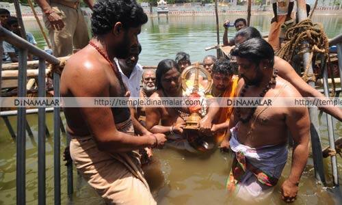 திருவண்ணாமலை: திருவண்ணாமலை அண்ணாமலையார் கோவிலில் நேற்று நடந்த சித்திரை வசந்த உற்சவ விழாவில், அய்யங்குளத்தில் தீர்த்தவாரி நடந்தது. இதில், ஏராளமான பக்தர்கள் நீராடி, சுவாமியை வழிபட்டனர். இந்த விழா, கடந்த, 11ம் தேதி துவங்கியது. தினமும், அண்ணாமலையார், உண்ணாமுலையம்மனுக்கு சிறப்பு அபிஷேகம், பூஜை நடந்தது. தொடர்ந்து, தல விருட்சமான மகிழமரம் வலம் வரும் நிகழ்ச்சியும், அப்போது பொம்மையால் சுவாமி மீது பூச்செரிதல் நிகழ்ச்சியும் நடந்தது. நேற்று, அண்ணாமலையார் சமேத உண்ணாமுலையம்மனுக்கு, சிறப்பு அபி ?ஷகம், பூஜை நடத்தப்பட்டு, அய்யங்குளத்தில் தீர்த்தவாரி நடந்தது. இதில், ஏராளமான பக்தர்கள் நீராடி, சுவாமியை வழிபட்டனர்.