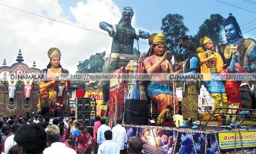 குன்னுார்: குன்னுார் தந்தி மாரியம்மன் கோவிலில், 71வது ஆண்டு முத்துப்பல்லக்கு உற்சவம் வெகு விமரிசையாக நடந்தது. குன்னுார் தந்திமாரியம்மன் கோவி லில், ஆண்டு தோறும் நடந்து வரும் சித்திரை தேர் திருவிழா முக்கிய நிகழ்ச்சிகளில் ஒன்றான முத்துப்பல்லக்கு நிகழச்சி நேற்று நடந்தது. தந்தி மாரியம்மன் கேரள சேவா சங்கம் சார்பில், 71வது ஆண்டாக நடக்கும், இந்த திருவிழாவில், வி.பி.,தெருவில் உள்ள துருவம்மன் கோவிலில் இருந்து துவங்கியது. பின்பு, கும்பகலசம், பஞ்சவாத்தியம், பூக்காவடி, அம்பலவயல் காவடி, சிங்காரமேளம், மற்றும் முத்துரத காளை ஊர்வலம் வீதிகளின் வழியாக வந்து, தந்திமாரியம்மன் கோவிலை சென்றடைந்தது. அங்கு, 108 குடம் பசும்பால், 108 இளநீர் மற்றும் அனைத்து அபிஷேக பொருட்கள் கொண்டு தந்திமாரியம்மனுக்கு சிறப்பு அபிஷேகம் நடந்தது. ஐயப்பன் கோவில் அருகே அன்னதானம் நடந்தது. இதில், வி.பி.,தெருவில் வைக்கப்பட்ட, பிரமாண்ட டிராகன் உருவம் பக்தர்களை கவர்ந்தது. தொடர்ந்து, மகா சக்தி அம்மனின் ரத ஊர்வலம் நடந்தது. விழாவில் திரளான பக்தர்கள் பங்கேற்றனர்.