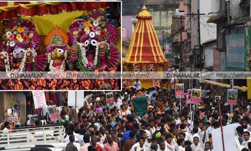 நடந்த தேர் திருவிழாவில் ஏராளமான பக்தர்கள் பங்கேற்று பஜனை பாடலுக்கு நடனமாடியபடி சென்றனர். தேரில் ஜெகந்நாதர் சிறப்ப அலங்காரத்தில் பக்தர்களுக்கு அருள் பாலித்தார். ஏராளமானேர் தரிசனம் செய்தனர்.