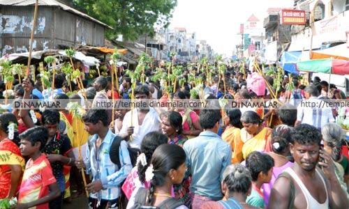 மயிலாடுதுறை: வைத்தீஸ்வரன் கோவிலுக்கு லட்சக்கணக்கான பக்தர்கள், பாத யாத்திரையாக வந்து சிறப்பு வழிபாடு செய்தனர். நாகை மாவட்டம், வைத்தீஸ்வரன் கோவிலில் தேவார பாடல் பெற்ற, தையல்நாயகி சமேத வைத்தியநாத சுவாமி கோவில் உள்ளது. இத்தலத்தில், புகழ்பெற்ற செல்வமுத்துக்குமார சுவாமிக்கும், நவ கிரகங்களில் செவ்வாய் பகவானுக்கு தனி சன்னிதி உள்ளது. ஆண்டுதோறும் சித்திரை மாதத்தின், இரண்டாவது செவ்வாய் கிழமையில் சிறப்பு வழிபாடு செய்ய, சிவகங்கை, செட்டிநாடு, திருச்சி, தஞ்சை, புதுக்கோட்டை உள்ளிட்ட பகுதிகளை சார்ந்த லட்சக்கணக்கான பக்தர்கள் பாத யாத்திரையாக, இக்கோவிலுக்கு வருவது வழக்கம். இந்த ஆண்டு, மூன்று லட்சத்திற்கும் அதிகமான பக்தர்கள் பாத யாத்திரையாக வந்தனர். அவர்களுக்கு, கோவில் நிர்வாகம் சார்பில் வரவேற்பு அளிக்கப்பட்டது. தாங்கள் வழிநடைக்கு துணையாக கொண்டு வந்த கம்புகளை, கொடிமரத்தில் காணிக்கையாக செலுத்தினர்.