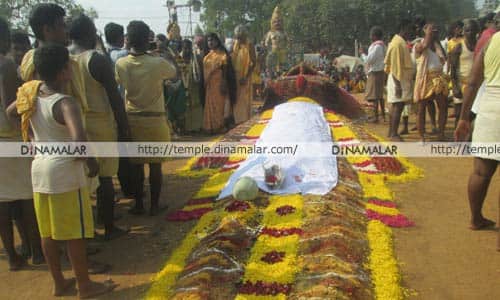 திருவண்ணாமலை: திருவண்ணாமலை மாவட்டம், சேத்துப்பட்டு அடுத்த ராஜமாபுரம் கிராமத்தில் உள்ள, திரவுபதி அம்மன் கோவிலில், ஆண்டு தோறும் மழை வேண்டி வசந்த உற்சவ விழா நடத்தப்படுவது வழக்கம். இந்த ஆண்டு அக்னி வசந்த விழா, கடந்த மாதம், 20ம் தேதி கொடியேற்றத்துடன் துவங்கியது. தினமும் இரவு மகாபாரத சொற்பொழிவு நடந்து வந்தது. இந்நிலையில், நேற்று காலை, 150 அடி உயர துரியோதனன் சிலை அமைக்கப்பட்டு, துரியோதனன் படுகளம் நிகழ்ச்சி நடந்தது. இதில், துரியோதனனை வீழ்த்தி, திரவுபதிஅம்மனுக்கு கூந்தலில், துரியோதனின் குருதியை தடவி, கூந்தலை முடிக்கும் நிகழ்ச்சி நடந்தது. இந்நிகழ்ச்சியில் ஏராளமானோர் பங்கேற்றனர்.