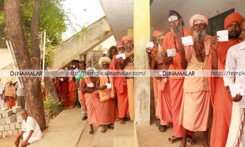 திருவண்ணாமலை: திருவண்ணாமலை கிரிவலப்பாதையில் உள்ள சாதுக்கள், நேற்று ஓட்டுப் போட்டனர். திருவண்ணாமலை கிரிவலப்பாதையில், 3 ஆயிரத்துக்கும் மேற்பட்ட சாதுக்கள் வசித்து வருகின்றனர். இவர்களுக்கு நிரந்தரமாக தங்க இடமில்லாததால், கிரிவலப்பாதையில் உள்ள சாலையோர மரத்தடியிலேயே தங்கியுள்ளனர். இவர்கள் தங்களுக்கு ஓட்டுரிமை கேட்டு, கடந்த, மூன்று ஆண்டுகளுக்கு முன்பு கலெக்டரிடம் மனு கொடுத்தனர். ஆனால், நிரந்தர முகவரி இல்லாததால், இவர்களுக்கு அனுமதி மறுக்கப்பட்டது. இதையடுத்து சாதுக்கள் ஒன்று கூடி, ஓம் ஆத்மலிங்கேஸ்வரர் டிரஸ்ட் என்ற அமைப்பை ஏற்படுத்தி, நீதிமன்றத்தில் வழக்கு தொடர்ந்தனர். வழக்கை விசாரித்த நீதிமன்றம், இவர்களுக்கு வாக்காளர் அடையாள அட்டை வழங்க அனுமதித்தது. இதன்படி, முதல் கட்டமாக, 752 சாதுக்களுக்கு வாக்காளர் அடையாள அட்டை வழங்கப்பட்டுள்ளது. இவர்கள், திருவண்ணாமலையில் செங்கம் சாலையில் உள்ள சண்முகா தொழிற்சாலை அரசு மேல்நிலைப்பள்ளி, அத்தியந்தல் மற்றும் ஆணாய்பிறந்தான் கிராமத்தில் உள்ள ஓட்டுச்சாவடிகளில் ஓட்டளிக்க அனுமதிக்கப்பட்டிருந்தது. நேற்று காலை, 7 மணிக்கே, ஓட்டுப் போடுவதற்காக வந்த சாதுக்கள் வரிசையில் நின்று ஓட்டுப் போட்டனர். தமிழகத்தில் பல்வேறு ஆன்மிக தலங்களில் சாதுக்கள் இருந்தாலும், திருவண்ணாமலையில் உள்ள சாதுக்களுக்கு மட்டுமே, ஓட்டளிக்க அனுமதி அளிக்கப்பட்டு, அவர்களுக்கு வாக்காளர் அடையாள அட்டை வழங்கப்பட்டுள்ளது குறிப்பிடத்தக்கது.