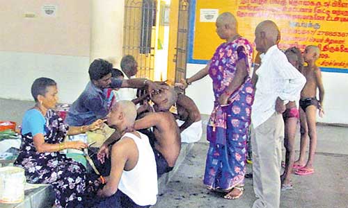 திருத்தணி முருகன் மலைக்கோவிலில் முடி காணிக்கை செலுத்தும் பக்தர்களுக்கு வசதியாக பேருந்து நிலையம் அருகே சன்னதி தெரு, திருக்குளம், மலைப்படியில் மற்றும் மலைக்கோவில் என, நான்கு இடங்களில் தேவஸ்தானம் சார்பில் முடி காணிக்கை மண்டபம் ஏற்படுத்தப்பட்டுள்ளது. அங்கேயே குளிப்பதற்கு இலவச அறைகளும் உள்ளன. அங்கு, மொட்டைக்கு, 10 ரூபாய் வீதம் கோவில் நிர்வாகம் வசூலிக்கிறது. ஆனால், ஊழியர்கள் கூடுதல் தொகை நிர்வாகத்திற்கு தெரியாமல் வசூலிக்கின்றனர். உதாரணமாக, சன்னதி தெருவில் உள்ள நாகவேடு முடி காணிக்கை மண்டபத்தில், பக்தர்கள் மொட்டை அடிப்பதற்கு நிர்வாகத்தின் சார்பில் விற்கப்படும்,