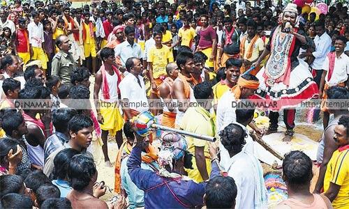 ஆர்.கே.பேட்டை: அடுத்தடுத்த கிராமங்களில், நேற்று நடந்த தீமிதி திருவிழாவில், ஒரே நேரத்தில் இரண்டு இடங்களில் துரியோதனன் படுகளம் நடந்தது. ஆர்.கே.பேட்டை அடுத்த, விளக்கணாம்பூடி மற்றும் செல்லாத்துார் கிராமங்களில் திரவுபதியம்மன் கோவில்களில், தீமிதி திருவிழா நடந்து வருகிறது. ஜெயக்கொடி ஏற்றத்துடன் துவங்கிய விழாவில், தினசரி மகாபாரத சொற்பொழிவு மற்றும் தெருக்கூத்து உள்ளிட்ட நிகழ்ச்சிகள் நடந்து வருகின்றன. இதில், 5ம் தேதி, விளக்கணாம்பூடியிலும், 6ம் தேதி செல்லாத்துாரிலும், அர்ச்சுனன் தபசு நடந்தது. வெள்ளிக்கிழமை அலகு பானை ஊர்வலம் விமரிசையாக கொண்டாடப்பட்டது. பதினெட்டாம் நாள் குருஷேத்திர போர்க்கள நிகழ்வு, நேற்று காலை, இரண்டு கோவில்களிலும், ஒரே நேரத்தில் நடந்தது. இரண்டு இடத்திலும், துரியோதனனை கொன்று பீமசேனன் வெற்றி கொண்டான். மாலை, 6:00 மணியளவில், அக்னி பிரவேசம் நடந்தது. இதில், காப்பு கட்டி விரதம் மேற்கொண்டிருந்த திரளான பக்தர்கள், அக்னி குண்டத்தில் இறங்கி தங்களின் நேர்த்திக் கடனை நிறைவேற்றினர். இன்று, தர்மராஜாவுக்கு பட்டாபிஷேகம் நடக்கிறது. 18ம் நாள் திருவிழா இன்றுடன் முடிவடைகிறது.