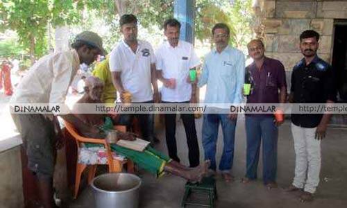 இதுகுறித்து, பெரியவர் அர்த்தனாரி சுவாமி கூறியதாவது: சேலம் மாவட்டம் அத்தனூர் பகுதியை சேர்ந்த நாங்கள் பல ஆண்டுகளுக்கு முன் பவானிக்கு வந்தோம். என் மனைவி வள்ளியம்மாள். ஏழு குழந்தைகள். மனைவி மற்றும் இரண்டு ஆண், இரண்டு பெண் பிள்ளைகள் இறந்து விட்டனர். அழகேசன், நடராஜன், தங்கவேல் என மூன்று மகன்களும், பேர பிள்ளைகளும் உள்ளனர். நான் வள்ளலார் பக்தன். நம்மால் முடிந்த வகையில், கூடுதுறை வரும் பக்தர்களுக்கு செய்ய வேண்டும் என நினைத்து, பவானி, குமாரபாளையம் பகுதி மக்களிடம் நிதி பெற்று கடந்த, 29 ஆண்டுகளாக கூழ் வழங்கி வருகிறேன். தற்போது, 107 வயது ஆகிய நிலையில், வெளியே செல்ல முடிவதில்லை. கடந்த ஒரு மாதத்திற்கு மேல் கூழ் வழங்கி முடியாமல் போனது. நேற்று (ஞாயிறு) அன்று மீண்டும் கூழ் காய்ச்சி பக்தர்களுக்கு வழங்கியது மிகவும் மன மகிழ்ச்சி தருவதாக இருந்தது. தினசரி ஆட்டோவில் கோவிலுக்கு வந்து செல்லும் செலவை தேனியை சேர்ந்த வக்கீல் ஒருவர் ஏற்றுகொண்டார். எனக்கு இதுவரை முதியோர் உதவி தொகை வழங்க கூட யாரும் உதவி செய்யவில்லை. இவ்வாறு மிகுந்த வருத்தத்துடன் கூறினார். இவரைப்பற்றிய தகவல் அறிந்து சென்னை, பெரம்பூர் அருள்ஜோதி அன்ன ஆலயம் சார்பில், கூழ் வழங்க ஆகும் செலவுகளை ஏற்றுக் கொள்வதாக தெரிவித்துள்ளார்.