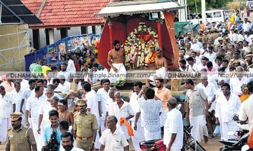 தேவகோட்டை: தேவகோட்டை அருகே பிரசித்தி பெற்ற கண்டதேவி சொர்ணமூர்த்தீஸ்வரர் கோவில் ஆனித்திருவிழா ஜூன் 11 ல் கொடியேற்றத்துடன் துவங்கியது. தினமும் சுவாமி, அம்மன், பரிவார மூர்த்திகள் சிறப்பு வாகனத்தில் வீதி உலா வந்தனர். ஒன்பதாம் நாளான நேற்று தேரோட்டம் நடந்தது. புதிய தேர் செய்யும் பணி நடப்பதால் சப்பரத்தில் சொர்ணமூர்த்தீஸ்வரர், பெரியநாயகி அம்மன் சென்றனர். நான்கு ரத வீதிகளிலும் சுற்றி வந்த சப்பரதேர் கோயிலை வாசலை அடைந்ததும் சிறப்பு தீபராதனை நடந்தது. பக்தர்கள் நேர்த்திகடனாக மாம்பழம் உட்பட பழங்களை பக்தர்களை நோக்கி வீசினர். சிவகங்கை சமஸ்தானம் கண்காணிப்பாளர் சுப்பிரமணியன் மற்றும் பக்தர்கள் பங்கேற்றனர். ராமநாதபுரம் டி.ஐ.ஜி.அனந்தகுமார் சோமானி, மாவட்ட எஸ்.பி.ஜியாவுல்ஹக் தலைமையில் போலீசார் பாதுகாப்பு பணியில் ஈடுபட்டனர்.