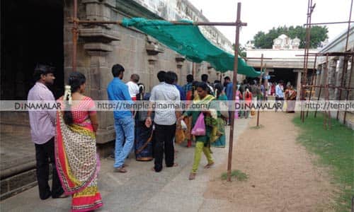 திருவிடந்தை: திருவிடந்தை, நித்ய கல்யாண பெருமாள் கோவிலில், மகா மண்டபம் சீரமைக்கப்பட்டுள்ளது.வைணவ, 108 திருத்தலங்களில், மாமல்லபுரம் அடுத்த, திருவிடந்தை நித்ய கல்யாண பெருமாள் கோவில், 62வது தலமாக விளங்குகிறது. இக்கோவிலில் மூலவர் ஆதிவராக பெருமாள், உற்சவர் நித்ய கல்யாண பெருமாள் ஆகியோர், முறையே அகிலவல்லி தாயார், கோமளவல்லி தாயார் ஆகியோருடன், பக்தர்களுக்கு அருள்புரிகின்றனர். திருமணம், மகப்பேறு உள்ளிட்ட தோஷங்களுக்கு, பரிகார தலமாக பிரசித்தி பெற்றது. இக்கோவிலை, வழிபாட்டின் அடிப்படையில், தமிழக இந்து சமய அறநிலையத்துறை, பண்டைய பாரம்பரிய கோவில் அடிப்படையில், இந்திய தொல்லியல் துறை நிர்வகிக்கின்றன. அறநிலையத்துறை சார்பில் திருப்பணி செய்யப்பட்டு, 2006, ஜூனில் கும்பாபிஷேகம் நடத்தப்பட்டது. இந்நிலையில், 2014 இறுதியில், தொல்லியல் துறை சார்பில், ரசாயன பூச்சு மூலம் கோவில் துாய்மைப்படுத்தப்பட்டது. மேலும் சிறு சீரமைப்புகளும் மேற்கொண்டதால், அப்பணியை திருப்பணியாக கருதி, 2014 டிசம்பரில், பாலாலயம் செய்யப்பட்டது.