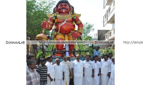 புதுச்சேரி: லாஸ்பேட்டை திரவுபதியம்மன் கோவிலுக்கு, புதிதாக செய்யப்பட்ட பகாசூரன், அன்னவாகன கரிக்கோல ஊர்வலம் நடந்தது. லாஸ்பேட்டை திரவுபதியம்மன் கோவில் ரூ. 10 லட்சம் செலவில் அன்னவாகனம் மற்றும் பகாசூரன் வாகனம் புதிதாக செய்யப்பட்டது. புதிய வாகனத்தின் கரிக்கோல ஊர்வலம் நேற்று நடந்தது. முன்னாக நேற்று காலை 7:00 மணிக்கு சிறப்பு பூஜைகள் நடந்தது. அதைத்தொடர்ந்து கரிகோல ஊர்வலம் துவங்கியது. முக்கிய வீதிகள் வழியாக சென்ற ஊர்வலம் இறுதியில் கோயிலை அடைந்தது. நிகழ்ச்சியில், துணை சபாநாயகர் சிவக்கொழுந்து, மரத்தால் செய்யப்பட்ட பகாசூரன் நன்கொடையாக வழங்கிய விநாயகம், பிரகாஷ், மரத்தால் செய்த அன்ன வாகனம் நன்கொடையாக வழங்கிய புருஷோத்தமன், கலிவரதன், ராமதாஸ், மணி, உமாபதி உட்பட கோவில் நிர்வாகத்தினர் பங்கேற்றனர்.