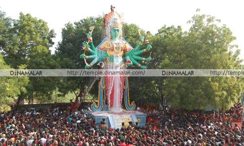 தூத்துக்குடி: தூத்துக்குடி அருகே, உலக நன்மைக்காக, 42 அடி உயர வெட்காளியம்மனுக்கு, 108 லிட்டர் பாலாபிஷேகம் நடந்தது. தூத்துக்குடிமாவட்டம், எட்டயபுரம், சிந்தலக்கரையில், காளிபராசக்தி தவசித்தர் பீடம் உள்ளது. இதன் இருமுடிமாலை திருவிழா நேற்று துவங்கியது. அம்மனுக்கு சிறப்பு பூஜைக்குப்பின், உலக அனைத்து உயிர்களின் நன்மை, அமைதி, திருமணத்தடை நீங்கவேண்டி, 42 அடி உயர வெட்காளியம்மனுக்கு 108 லிட்டர் பாலாபிஷேகமும், வேள்வி பூஜையும் நடைபெற்றது. இவ்விழாவில், ஆயிரக்கணக்கான பக்தர்கள் பங்கேற்று தரிசனம் செய்தனர்.
