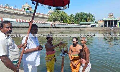 இந்த குளங்களில் நீராடி வழிபட்டால் பல்வேறு சிறப்புகளை பெறலாம் என்பது ஐதீகம்.மாதந்தோறும் அமாவாசை மற்றும் தமிழ்மாத பிறப்பன்று அஸ்திரதேவர் முக்குளங்களில் தீர்த்தம் கொடுப்பது வழக்கம். தட்சியாண புண்ணியகாலத்தின் தொடக்கமான ஆடி மாத முதல் நாளில், காலை அஸ்திர தேவரை முன்று குளங்களுக்கும் மேள,தாளம் முழங்கிட ஊர்வலமாக எடுத்து செல்லபட்டு,அவருக்கு பால், சந்தனம் உள்ளிட்ட பொருட்களால் முன்றுக்குளங்களில் அபிஷேகம் நடைபெற்றது. பின்னர் தீர்த்தவாரி நடைபெற்றது. இதில் கோயில் நிர்வாக அதிகாரி முருகையன், பேஸ்கார் திருஞானம், ஆலய அர்ச்சகர்கள் ராஜாப்பா, வினோத் மற்றும் 63 நாயன்மார்கள் வழிபாட்டு மன்றத்தலைவர் பாபு, இணைச்செயலாளர் ராஜேஸ்குமார் உள்ளிட்ட ஏராளமான பக்தர்கள் புனித நீராடினார்.