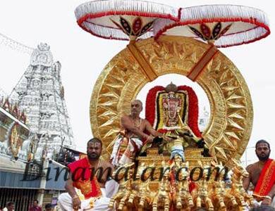 நகரி: திருப்பதி வெங்கடேச பெருமாள் கோவிலில், ஆண்டு பிரம்மோற்சவ விழா, இம்மாதம் 28ம் தேதி இரவு 7 மணி முதல் 8 மணிக்குள் அங்குரார்ப்பணத்துடன் துவங்குகிறது. 29ம் தேதி முதல் அக்., 7ம் தேதி வரை ஒன்பது தினங்கள் நடைபெறும் பிரம்மோற்சவ விழாவில், தினமும் லட்சத்திற்கும் மேற்பட்ட பக்தர்கள் கலந்து கொள்வர் என, எதிர்பார்க்கப்படுகிறது. வரும் 29ம் தேதி திருமலைக்கு வரும் ஆந்திர முதல்வர் கிரண்குமார் ரெட்டி, மாநில அரசு சார்பில் ஸ்ரீதேவி, பூதேவி சமேதரான மலையப்பசுவாமிக்கு பட்டுவாஸ்திரம் சமர்பிக்கிறார். பிரம்மோற்சவத்தின் ஐந்தாம் நாளான அக்., 3ம் தேதி மலையப்பசுவாமிக்கு மிகவும் விருப்பமான கருட வாகன சேவை உற்சவம் நடைபெறுகிறது. அக்., 4ம் தேதி தங்கத்தேர் உற்சவம் நடக்கிறது. தினமும் சுவாமி உபயதேவியாருடன் வாகன சேவையில், உற்சவ மூர்த்தியாக, திருமலையின் நான்கு மாடவீதிகளில் எழுந்தருளி பக்தர்களுக்கு காட்சியளிக்கிறார். பிரம்மோற்சவ விழாவிற்கான நிகழ்ச்சி விவரங்களை, தேவஸ்தானம் வெளியிட்டுள்ளது. 28ம் தேதி திருமலை கோவிலில் இரவு 7 மணிக்கு அங்குரார்ப்பணம் நிகழ்ச்சி தொடங்குகிறது. பிரம்மோற்சவத்தின் நிறைவு நாளான, 7ம் தேதி காலை 7.30 மணி முதல் காலை 9 மணி வரை திருமலை தெப்பத் திருக்குளத்தில் சக்கரஸ்தான வைபவம் நடைபெறும். பிரம்மோற்சவ விழாவிற்கான அனைத்து ஏற்பாடுகளும் செய்யப்பட்டு வருவதாக தேவஸ்தான நிர்வாக அதிகாரி சுப்பிரமணியம் தெரிவித்துள்ளார்.