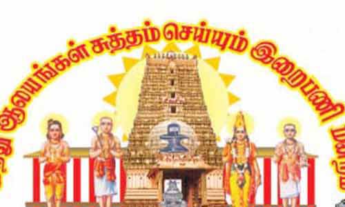 சென்னை : இந்து ஆலயங்கள் சுத்தம் செய்யும் இறைபணி மன்றத்தின் உழவாரப்பணி சென்னை மற்றும் அதன் அருகில் உள்ள மாவட்டங்களில் உள்ள கோவில்களில் 13 ஆண்டுகளாக சிறப்பாக நடைபெற்று வருகிறது. உழவாரப்பணிக்கு தேர்ந்தெடுக்கப்படும் கோவில் பராமரிப்பு அற்ற நிலையில் மற்றும் நித்திய பூஜை நடைபெறாத நிலையில் உள்ள ஆலயங்களை பார்வையிட்டு விவரம் அறிந்து அனைத்து அடியார்களுக்கும் நோட்டீஸ் மூலமாக தெரிவிக்கப்படும். அக்கோவில் பிரகாரம் சுத்தம் செய்தல், சுண்ணாம்பு அடித்தல், சுவாமியின் வாகனங்கள், வஸ்திரங்கள் சுத்தம் செய்தல், பூஜை பொருள்கள் துலக்குதல், பிரகாரத்தில் தேவாரம், திருவாசகம், திருமுறை பாடல்களை எழுதுதல் போன்ற பணிகள் நடைபெறும். இதுவரை 173 கோவில்களில் உழவாரப்பணி செய்யப்பட்டுள்ளது.