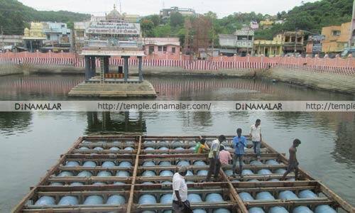 குளக்கரையில் பக்தர்கள் பாதுகாப்பாக நீராடுவதற்காக, தடுப்பு வேலிகள் அமைக்கப்பட்டு உள்ளன. இருசக்கர வாகனங்கள், வரும் 27 மற்றும் 28 ஆகிய தேதிகளில், மலைக்கோவிலுக்கு செல்ல தடை செய்யப்பட்டு உள்ளது. அதே போல், தெப்பலில், அரசியல் பிரமுகர்கள் மற்றும் பக்தர்கள் ஏறுவதற்கும் தடை விதிக்கப்பட்டு உள்ளது. முன்னதாக, ஆட்சியர் தற்காலிக பேருந்து நிலையங்கள், நல்லாங்குளம், சரவணபொய்கை குளம் ஆகிய இடங்களுக்கு நேரில் சென்று ஆய்வு மேற்கொண்டார். கூட்டத்தில், மாவட்ட எஸ்.பி., சாம்சன், திருத்தணி எம்.எல்.ஏ., நரசிம்மன், வருவாய் கோட்டாட்சியர் விமல்ராஜ், திருத்தணி நகர்மன்ற தலைவர் சவுந்தர்ராஜன், இணை ஆணையர் தனபாலன் உட்பட, அரசு அலுவலர்கள் கலந்து கொண்டனர்.