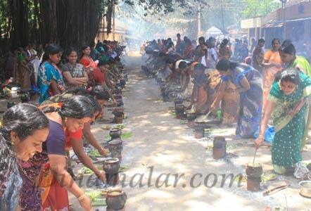 நாகர்கோவில்: பெண்களின் சபரிமலை என்று அழைக்கப்படும், மண்டைக்காடு பகவதி அம்மன் கோவிலில் நடைபெற்ற அஸ்வதி பொங்கல் விழாவில், ஆயிரக்கணக்கான பெண்கள் கலந்து கொண்டனர். கன்னியாகுமரி மாவட்டம், நாகர்கோவிலில் இருந்து 18 கிலோ மீட்டர் தொலைவில் அமைந்துள்ளது, மண்டைக்காடு பகவதி அம்மன் கோவில். கேரளாவில் இருந்து, இங்கு தேவி தரிசனம் நடத்த வரும் பெண்கள், தலையில் இருமுடி கட்டுடன் வந்து கும்பிடுவதால், இது பெண்களின் சபரிமலை என்று அழைக்கப்படுகிறது. மேலும், இந்த கோவில் கடல் குளித்து வழிபாடு நடைபெறும் ஒரு கோவிலாகவும் விளங்கி வருகிறது. இங்கு, ஆவணி மாதம் அஸ்வதி நாளில், பொங்கல் விழா நடைபெறுகிறது. ஆயிரக்கணக்கான பெண்கள் இங்கு கூடி, ஒரே நேரத்தில் அம்மனுக்கு பொங்கல் வைத்து வழிபடுவதன் மூலம், ஐஸ்வரியமும், நன்மையும் பெருகும் என்பது நம்பிக்கையாக இருந்து வருகிறது. நேற்று நடைபெற்ற இந்த பொங்கல் விழாவை, வனத்துறை அமைச்சர் பச்சைமால் மனைவி செல்வஅழகி தொடங்கி வைத்தார். தொடர்ந்து, அன்னதானமும் நடைபெற்றது.