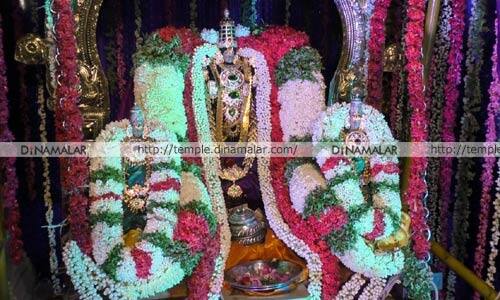 புதுச்சேரி: காரைக்கால் ஸ்ரீகரியமாணிக்க பெருமாள் கோவிலில் நடைபெற்ற ஊஞ்சல் உற்சவத்தில் ஏராளமான பக்தர்கள் பங்கேற்று சுவாமி தரிசனம் செய்தனர். புதுச்சேரி மாநிலம் நிரவியில் அமைந்துள்ள பிரசித்தி பெற்ற ஸ்ரீஜெம்புநாத சுவாமி தேவஸ்தானம் ஸ்ரீகரியமாணிக்க பெருமாள் கோவிலில் உற்சவ மூர்த்திக்கு வஜ்ராங்கி சமர்ப்பணம் செய்யும் நிகழ்ச்சியும், ஊஞ்சல் உற்சவமும் சிறப்பாக நடைபெற்றது. முன்னதாக, சுவாமிக்கு சிறப்பு திருமஞ்சனமும், தொடர்ந்து வஜ்ராங்கியை உற்சவ மூர்த்திக்கு சமர்ப்பணம் செய்யும் நிகழ்ச்சியும் நடைபெற்றது. விழாவை முன்னிட்டு பரத நாட்டிய நிகழ்ச்சி நடைபெற்றது.
