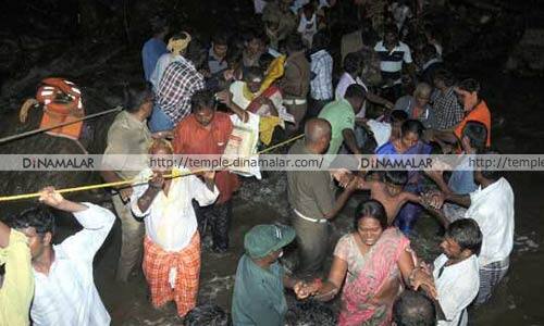 தொடர்ந்து மழை:ஏற்கனவே மாலை 4 மணிக்கு மேல் பக்தர்கள் மலைக்கு செல்ல தடைவிதித்ததால் வெள்ளப்பெருக்கு ஏற்பட்ட நேரத்தில் மலைப்பாதையில் பக்தர்கள் யாரும் இல்லை. இதனால் வெள்ள ஆபத்திலிருந்து பக்தர்கள் தப்பினர். மலைப்பகுதியில் தொடர்ந்து மழை பெய்வதால் போலீசார், தீயணைப்பு துறையினர் மீட்பு வாகனங்களுடன் தயார் நிலையில் உள்ளனர்.